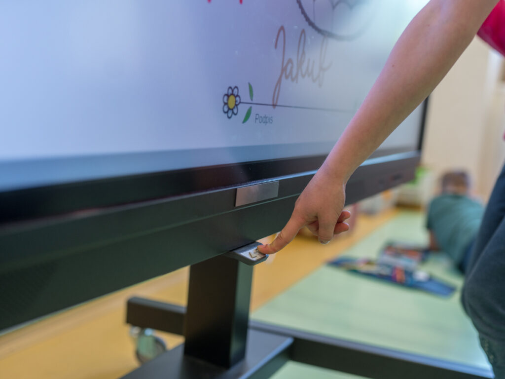 Interaktivní sestavy MultiBoard fungují na principu „zapoj a hraj“. Stačí připojit do zásuvky, stisknout tlačítko a začít vyučovat. Díky elektrickému pojezdu lze tabuli snadno výškově nastavit, takže ji využijí i nejmladší žáci nebo učitelé různých postav.